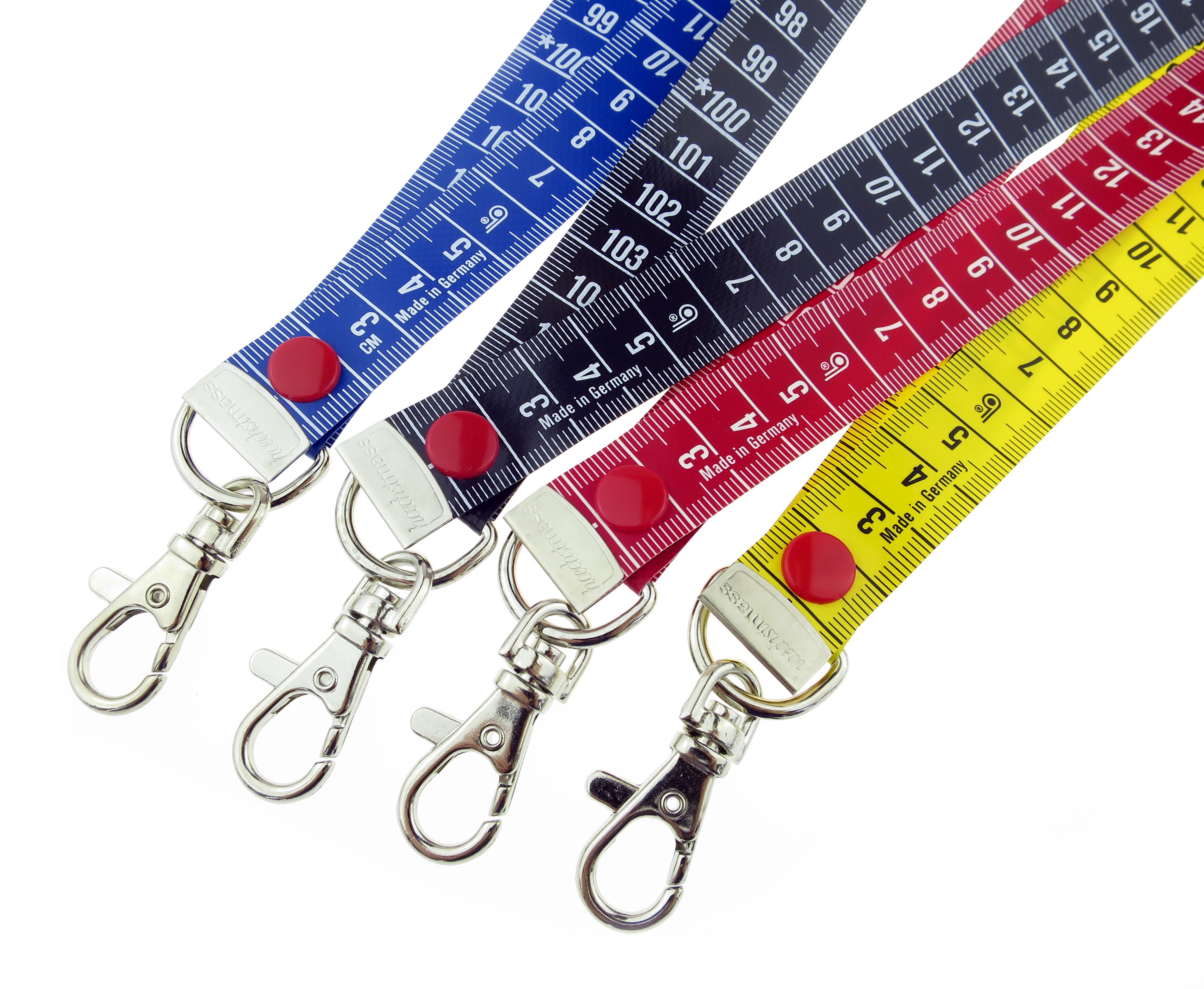 Maßband und Lanyard in einem: praktisches Umhängeband mit ca. 100 cm langer Skala. Ideal für Schlüssel, Ausweise oder Messen.