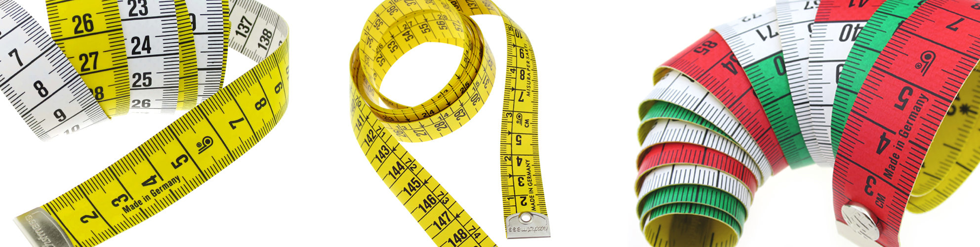 Flexible Schneidermaßbänder in hochwertiger Poly-Fibre Qualität. Maßband in verschiedenen Ausführungen.