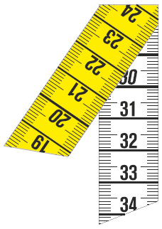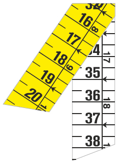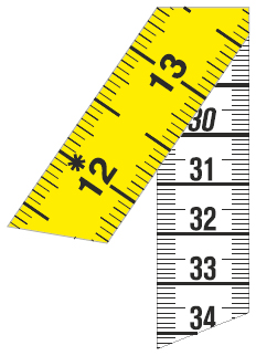 *analog Skala = cm + inch auf derselben Bandseite