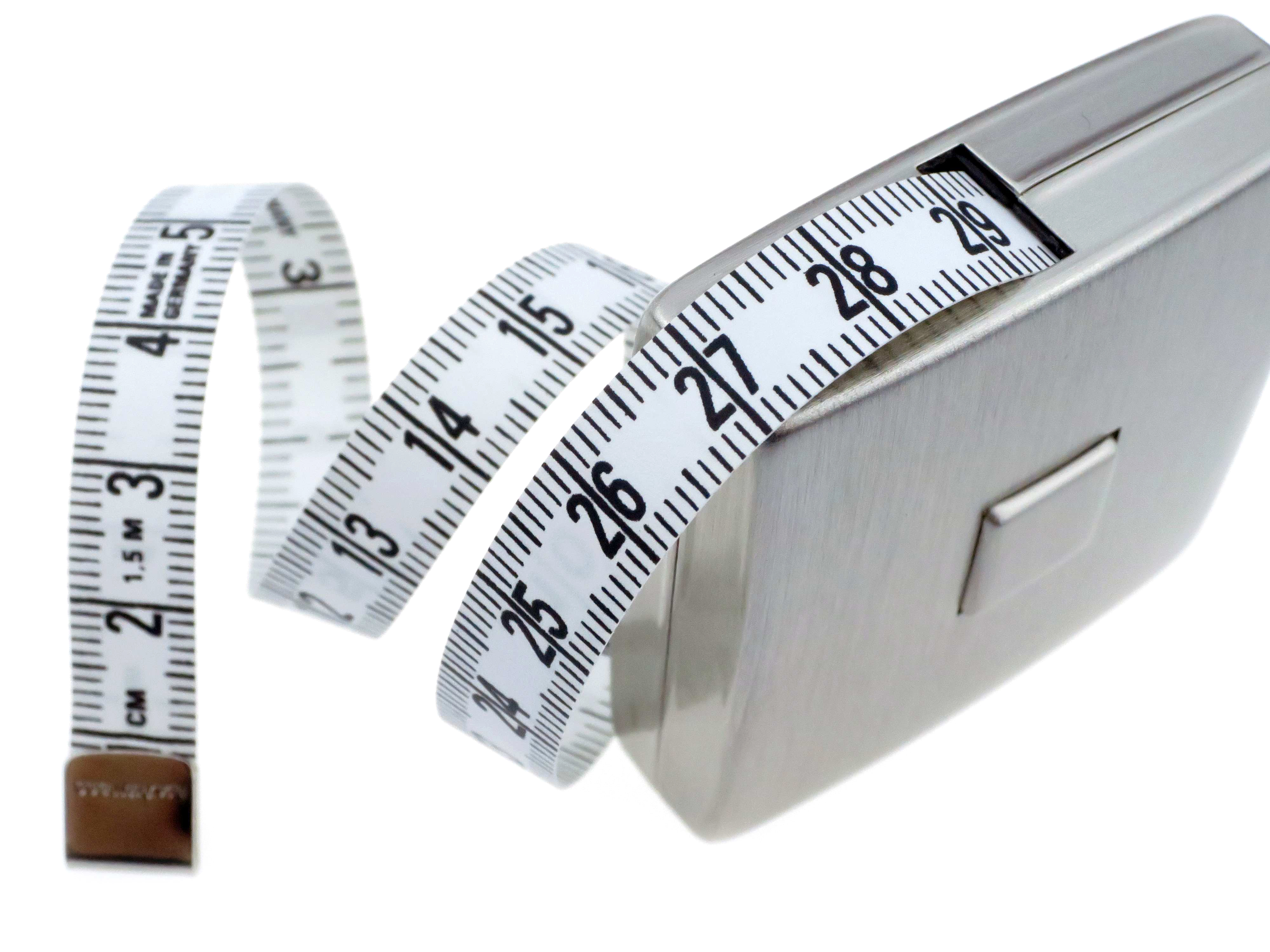 Flexibles Maßband in hochwertigem Metallgehäuse mit Go und Stopp Aufrollautomatik.