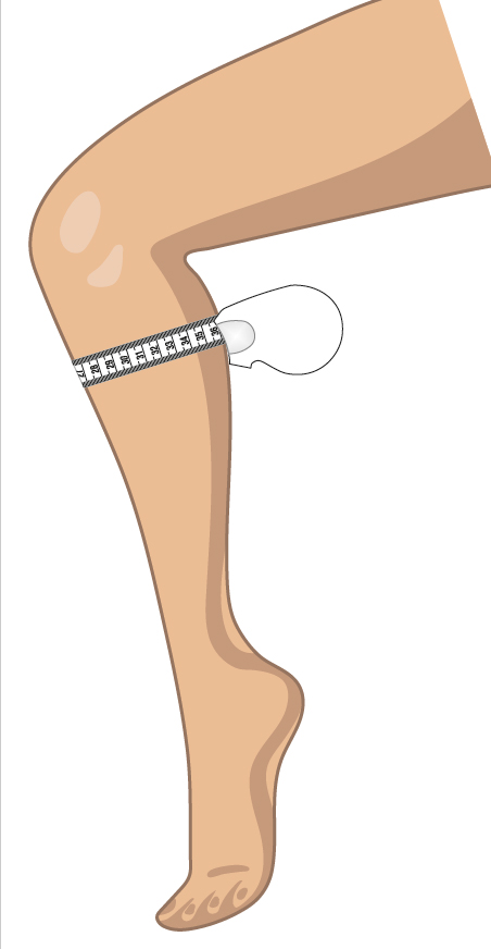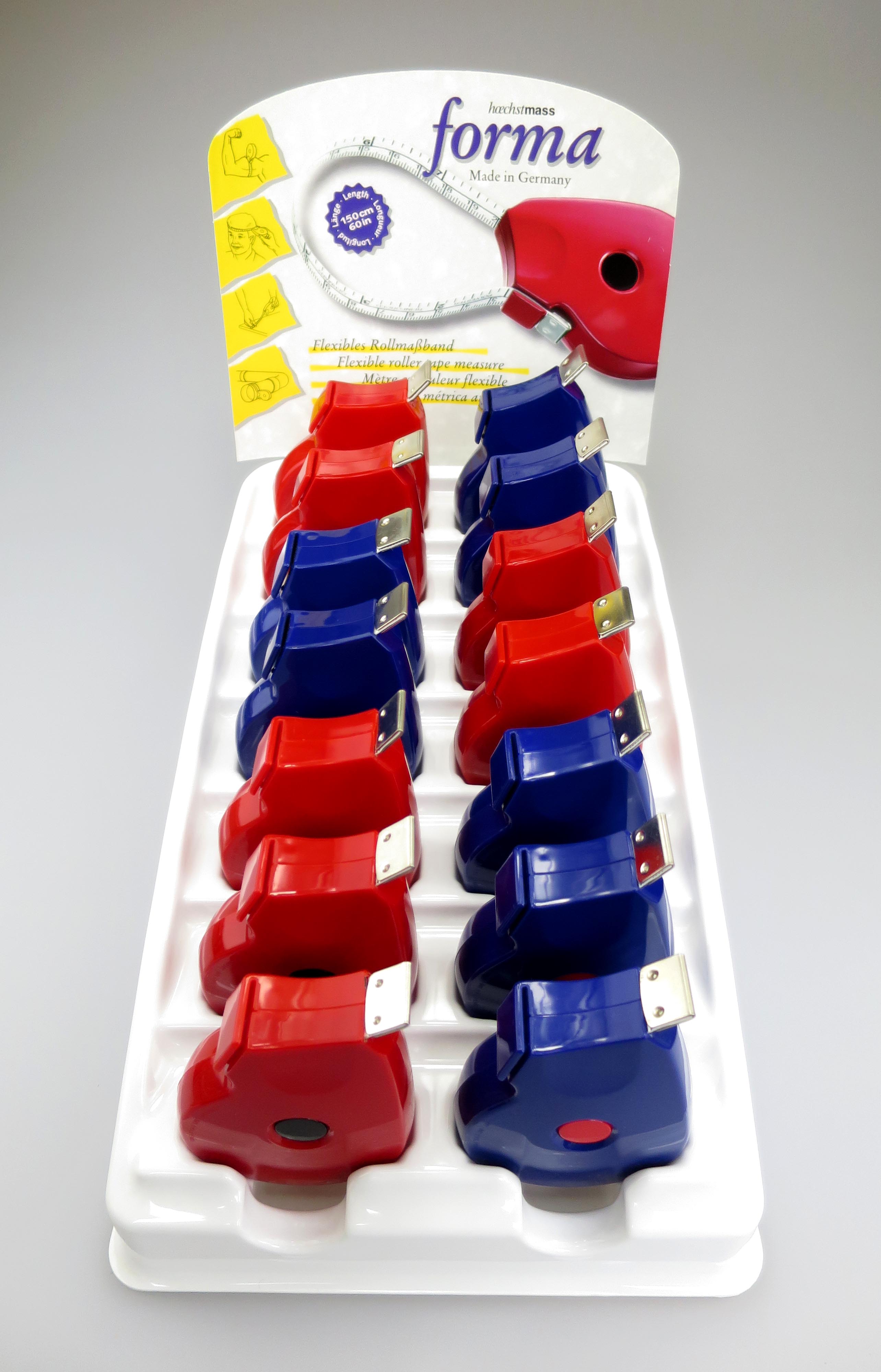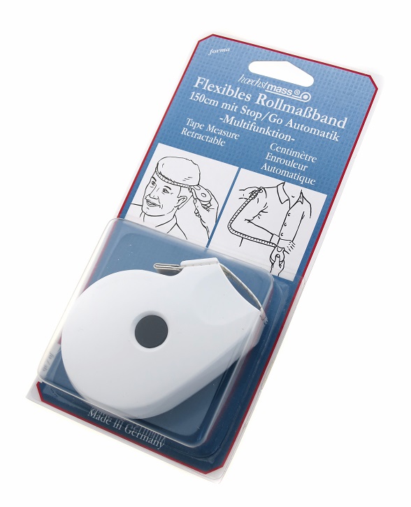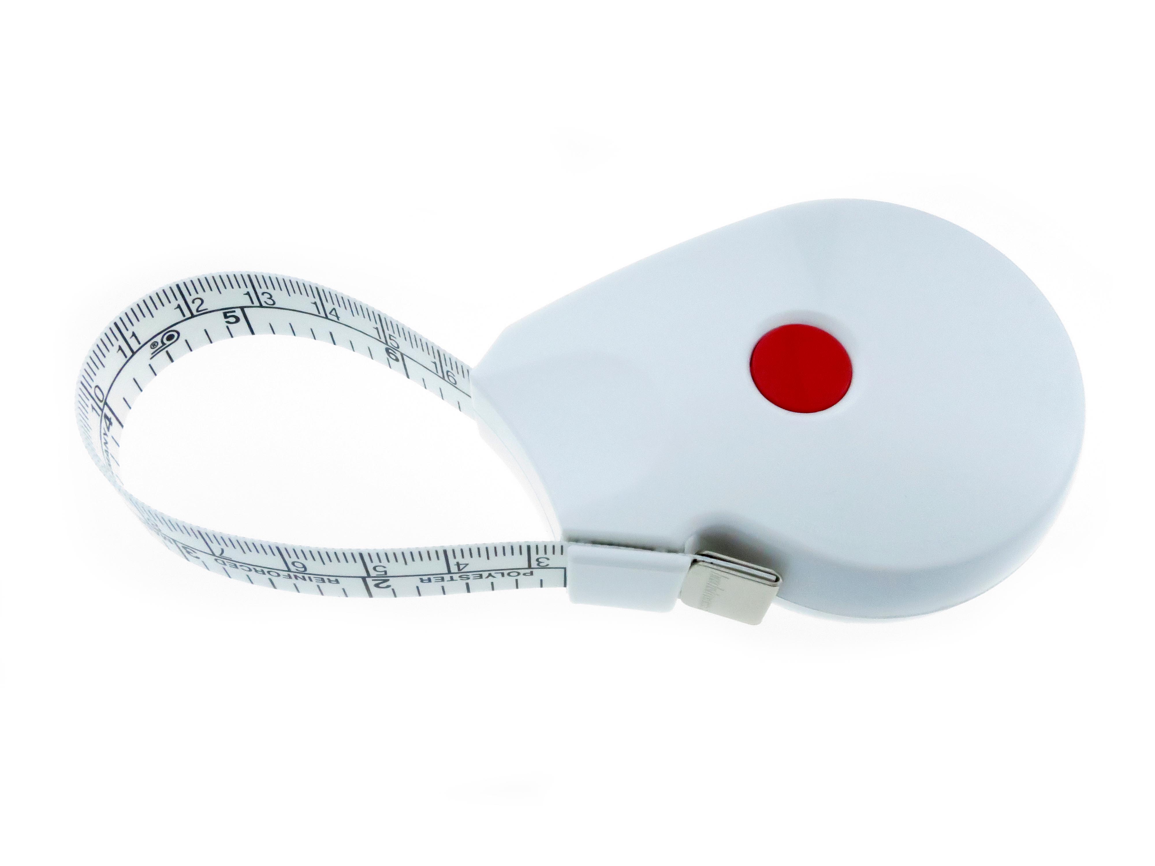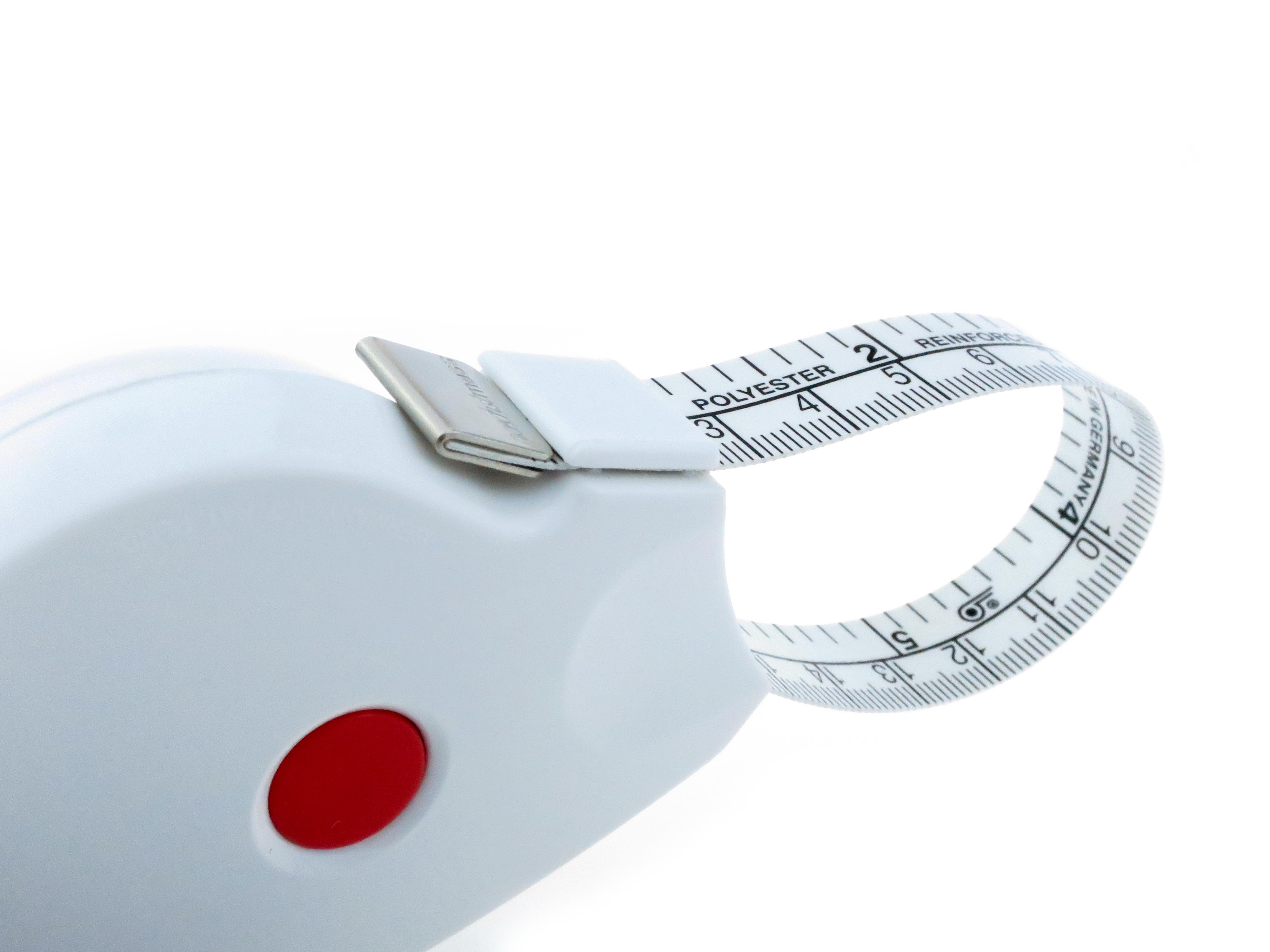 Anschließend einfach mit dem Druckknopf das Maßband einrollen lassen, um den Umfang zu bestimmen.