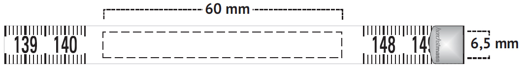 Beidseitig weißes Maßband aus flexiblem Polyfibergewebe im Gehäuse aus schlagfestem ABS Kunststoff.