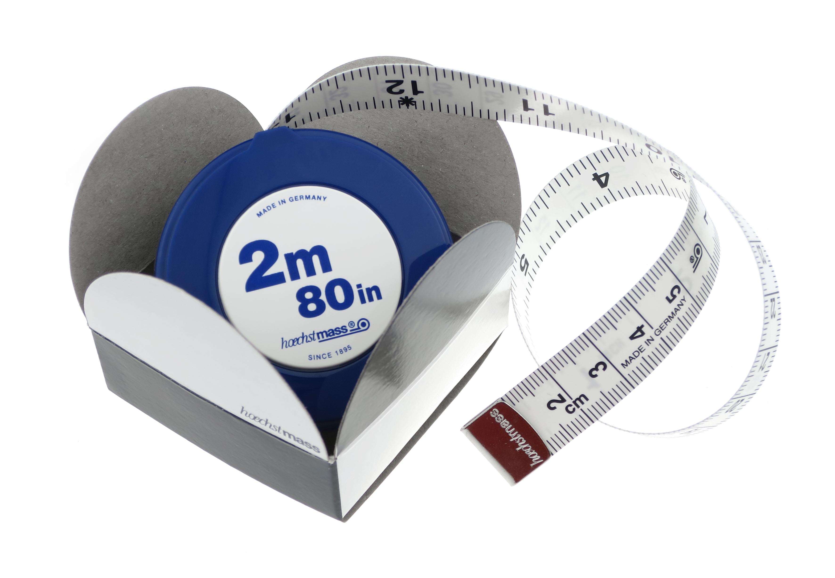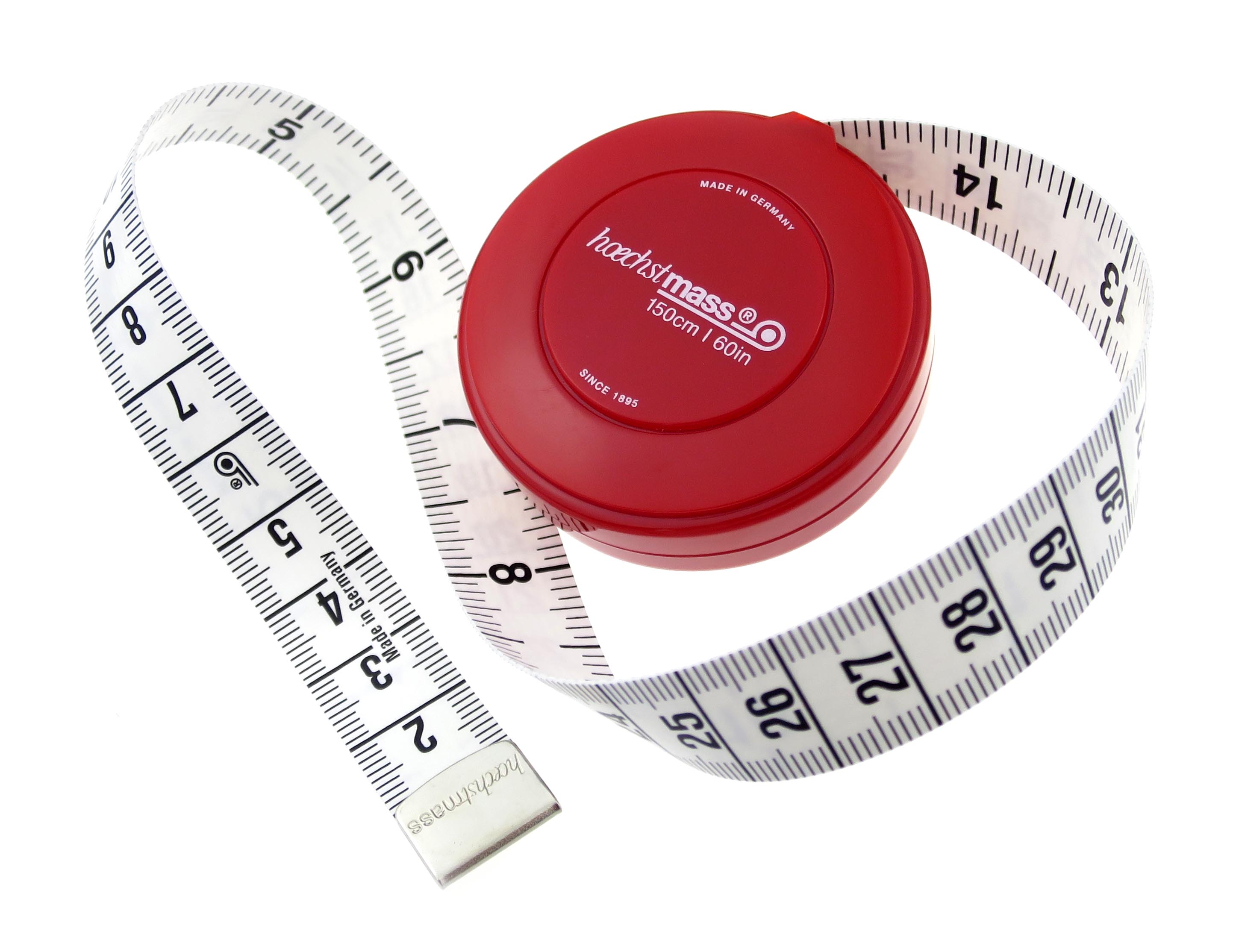 Beidseitig weißes Maßband in hochwertiger Poly-Fibre Qualität, schwere Ausführung.