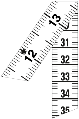 Maßeinteilung in schwarz, beidseitig cm-mm Skala, alternativ eine Seite inch.