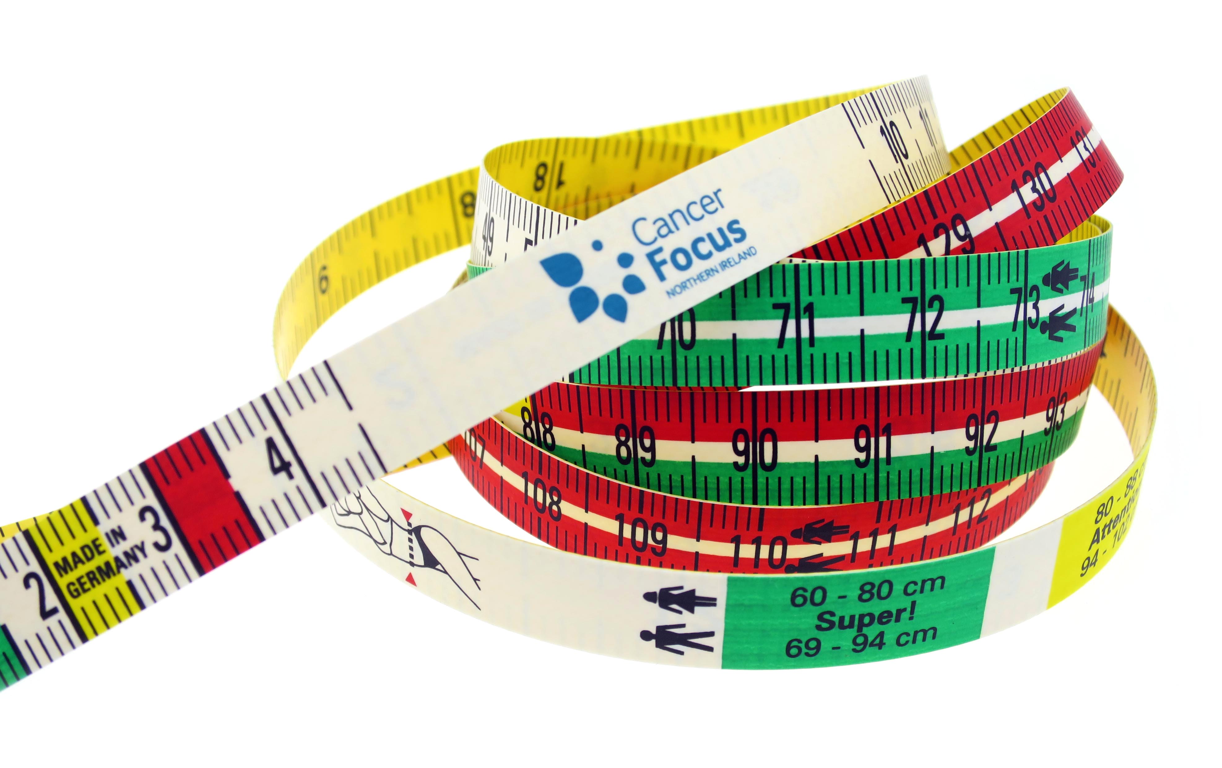 Kleines Maßband im Bonbonpapier für die Bauchumfangmessung im medizinischen Bereich. Ideal als Streuartikel für Veranstaltungen.