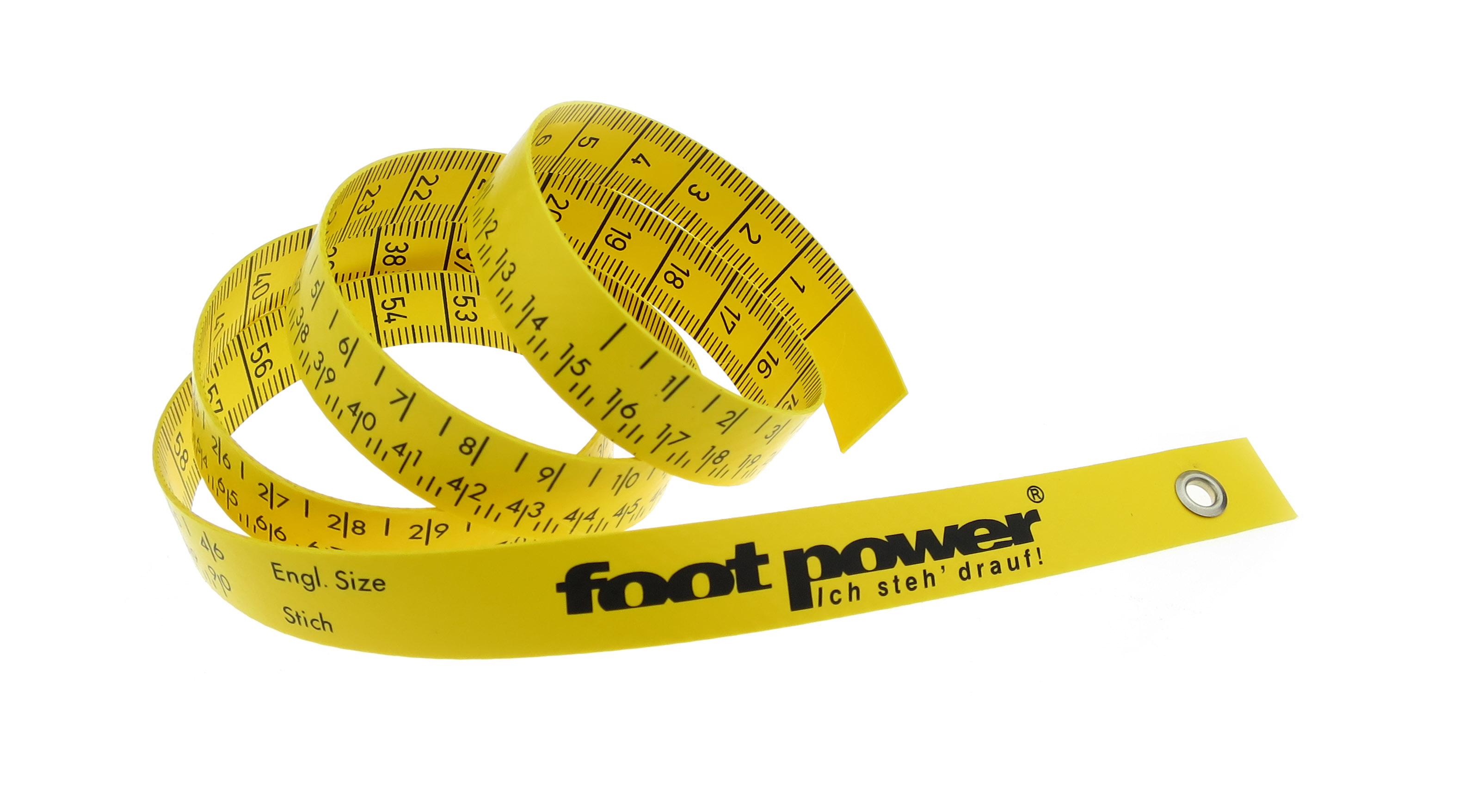 Maßband zum Messen von Schuhleisten, für den professionellen Gebrauch. Eine Seite mit französischem Stich und englischen Größen.