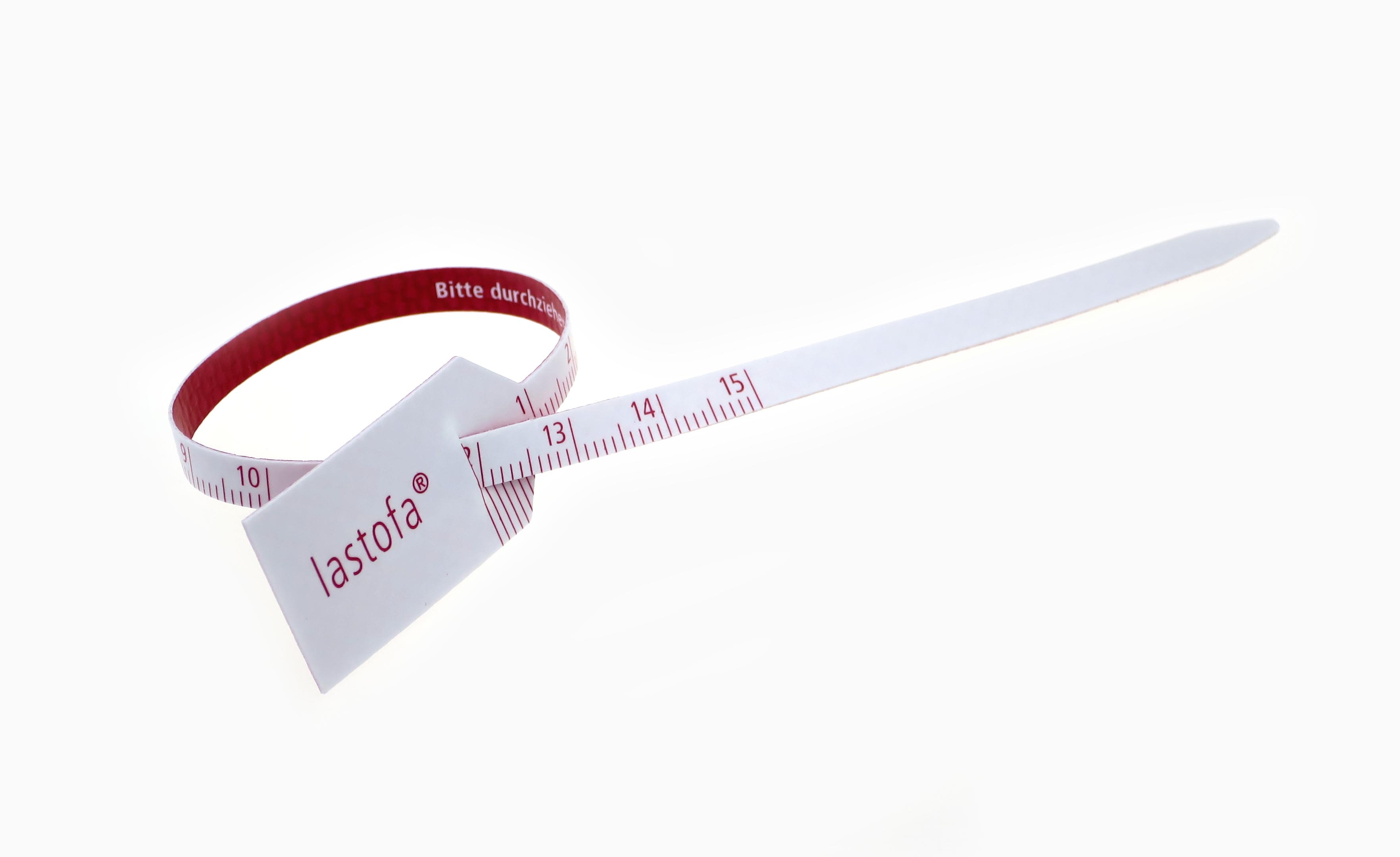Spezielles Maßband um die Fingerdicke zu definieren.