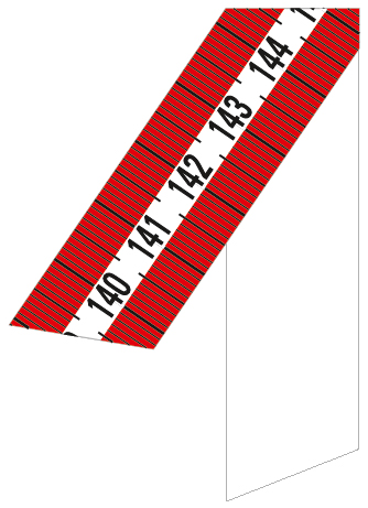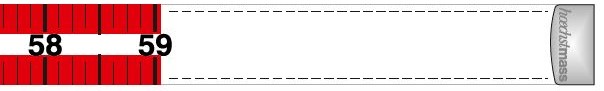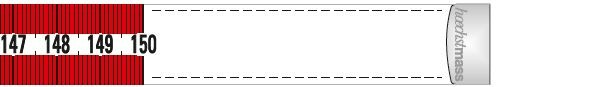 Beide Seiten weiß, cm-mm oder Analog-Skala (cm+inch kombiniert) mit farbigen Bereichen grün, gelb und rot, die die Gesundheitsgefährung anzeigen