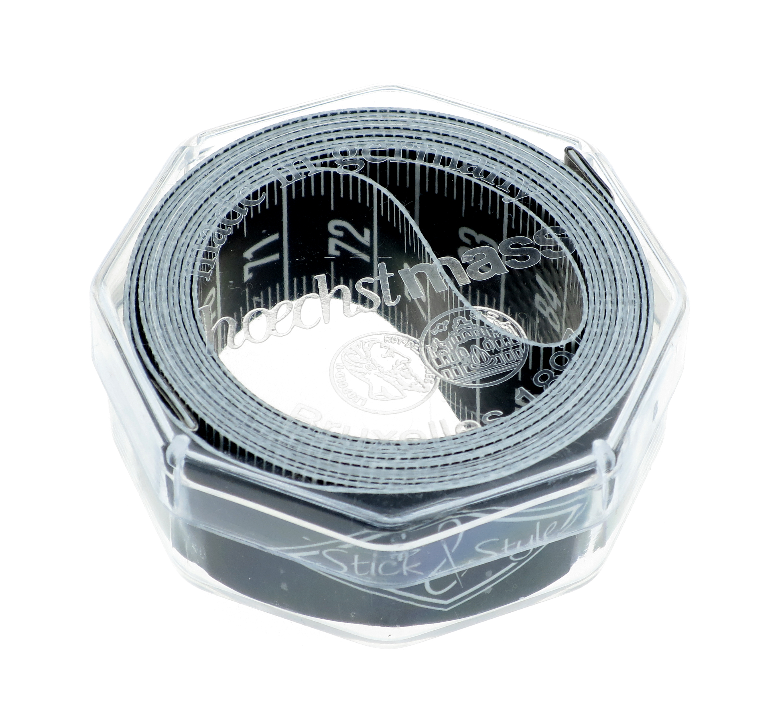 160 cm langes Maßband in schwarz und klassischer Skala in weiß.