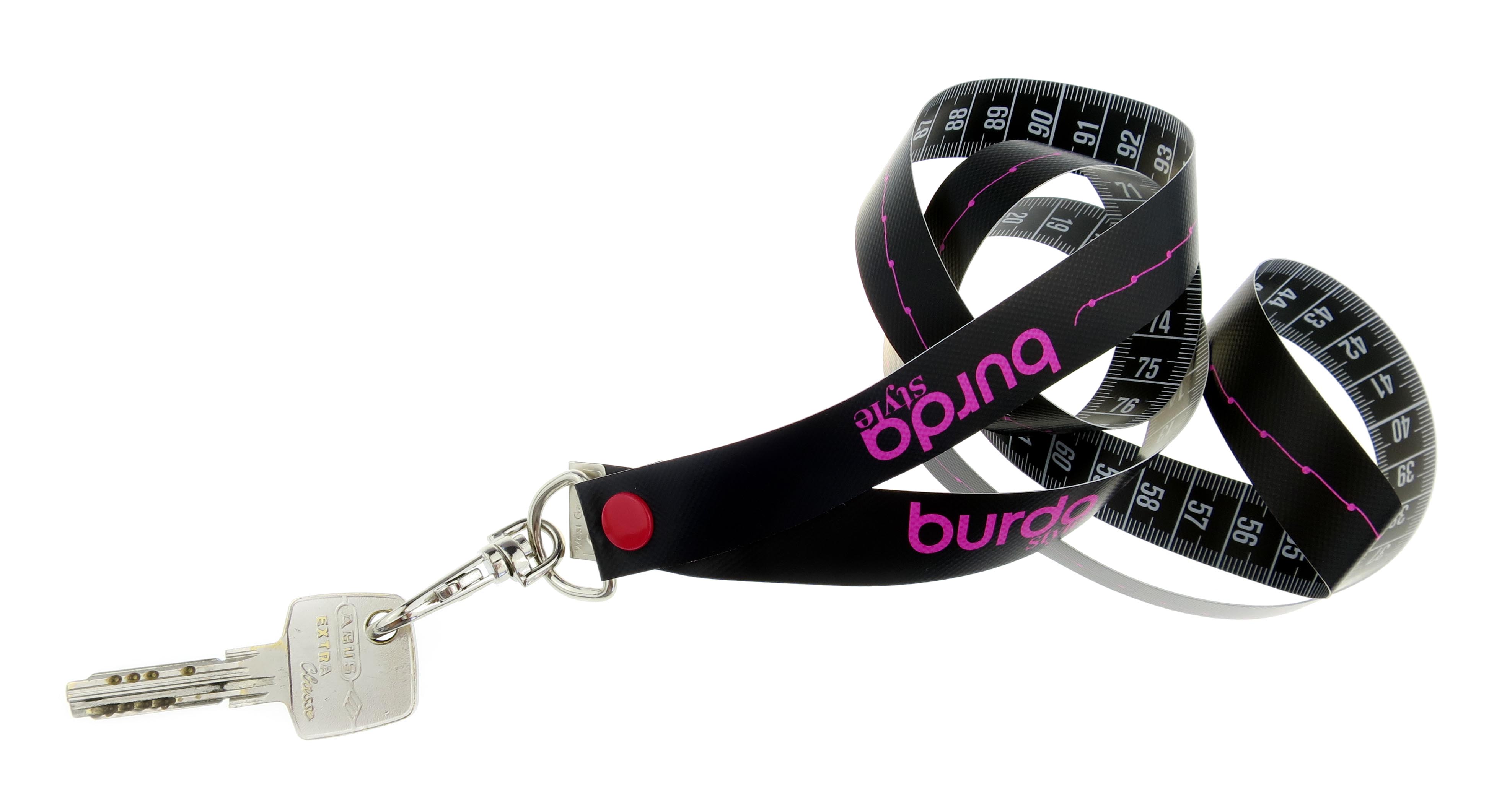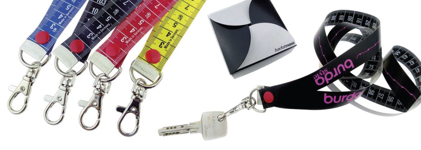 Für den täglichen Gebrauch als Maßband, aber auch als Schlüsselanhänger, Ausweishalter oder Messe-Lanyard.