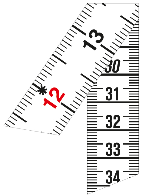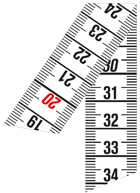 - Beidseitig cm-mm-Skala oder eine Seite cm, andere Seite inch