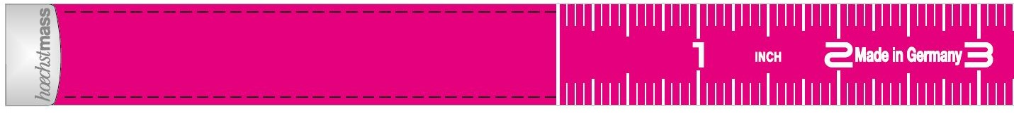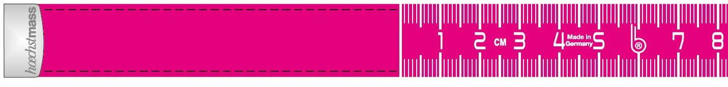 - Werbedruck in Vollton-Farben nach Pantone oder HKS auf einer Seite am Bandanfang, im Anschluss Skala von 0-150 cm / 60 inch