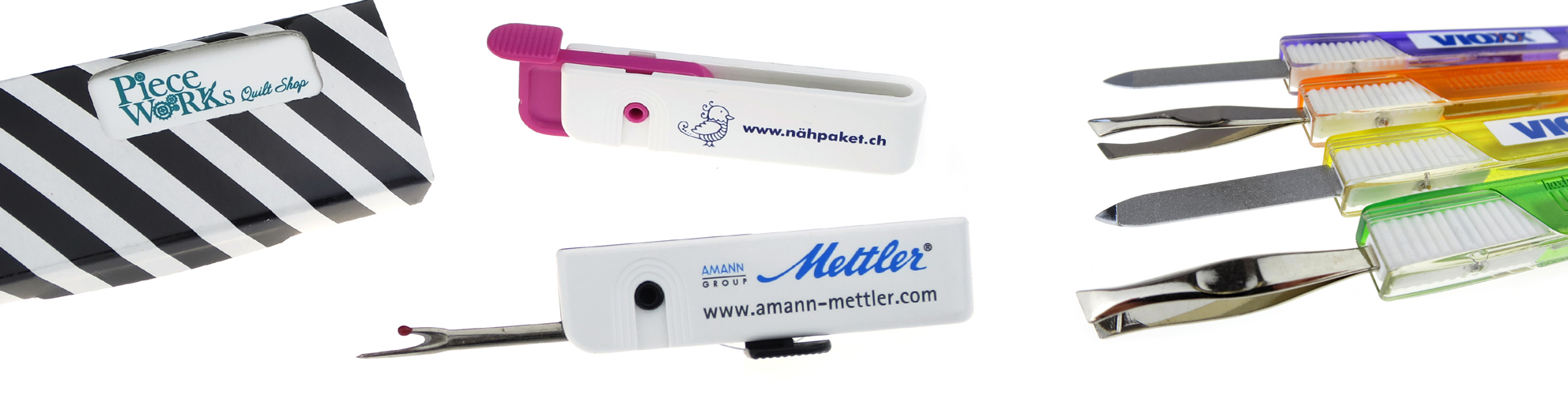 Unsere Nähhelfer sind aufgrund einklappbarer Klingen und Schieber leicht zu handhaben.