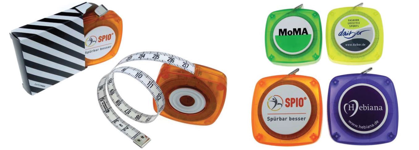 Flexible roller tape measure prisma in translucent trend colours with rewind mechanism.